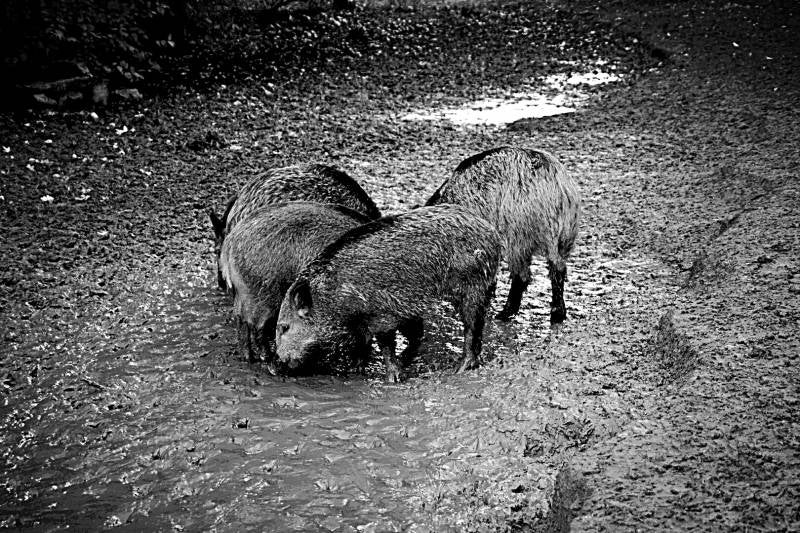 Spin, zwart/wit gefotografeerd, schuin omhoog met alleen lucht op de achtergrond, vandaar het egale wit. Libelle, in kleur gefotografeerd, tegen de zon in, omgezet in zwart/wit. Schotse Hooglander, in kleur gefotografeerd, bewerkt en in zwart/wit gezet.