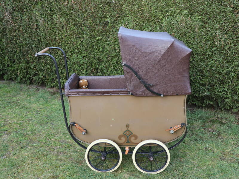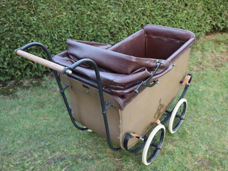 Ik had een paar jaar geleden de blauwe kinderwagen gekocht met het idee dat deze in de jaren 40-45 werd gebruikt. Onlangs kwam ik erachter dat deze wagen pas gemaakt werd in 1953. Dus ondanks dat het een prachtige wagen is kan ik het niet meer gebruiken bij de re-enectment WOII. Speurend op internet kwam ik de bruine wagen tegen. Ook 1 uit de fabriek van "van Werven" maar dan van 1935! Deze kan ik dus wel gaan gebruiken!