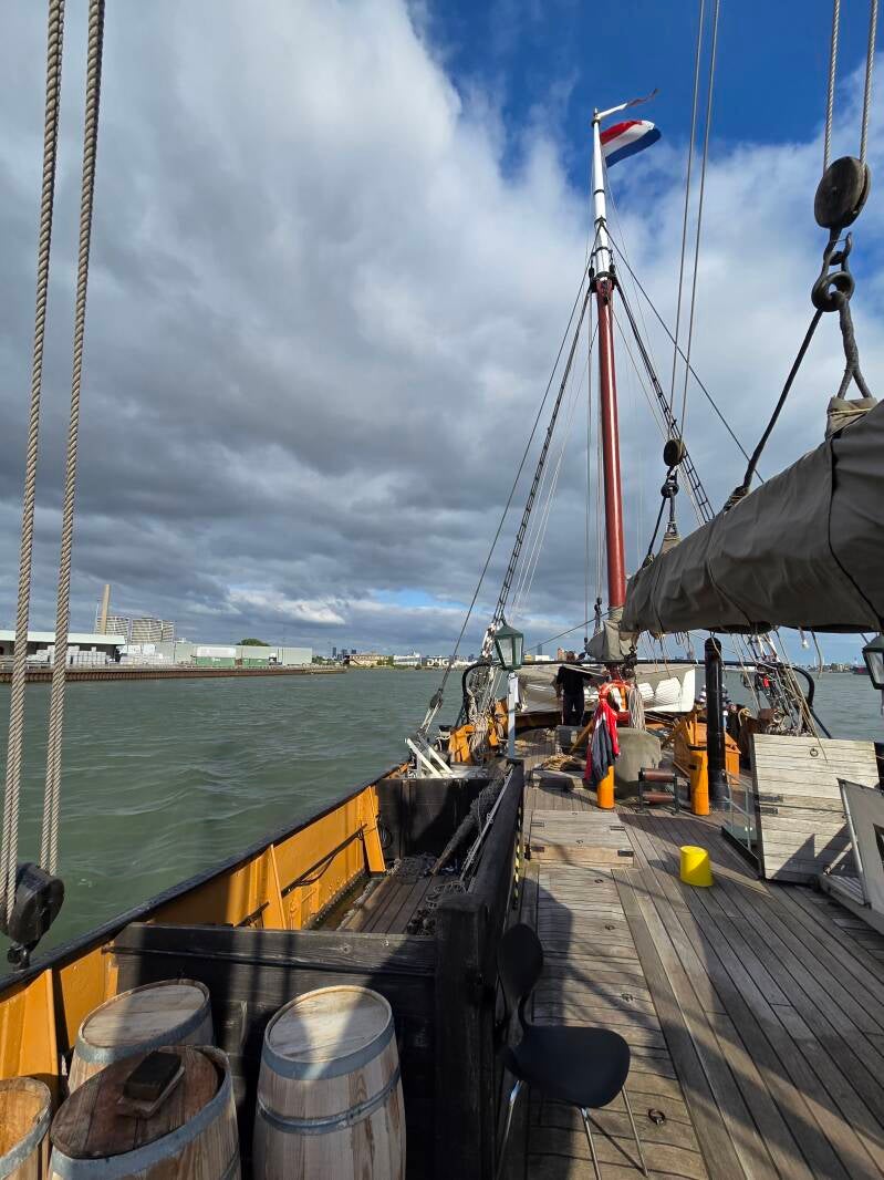 We kregen de gelegenheid mee te varen op dit schip van Rotterdam, Leuvehaven naar de haven van Vlaardingen. Mijn opa heeft als kleine jongen en later als schipper gevaren op de haringvloot, dus dit was extra bijzonder.