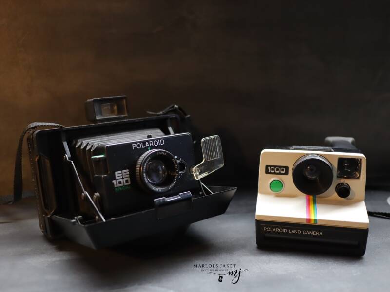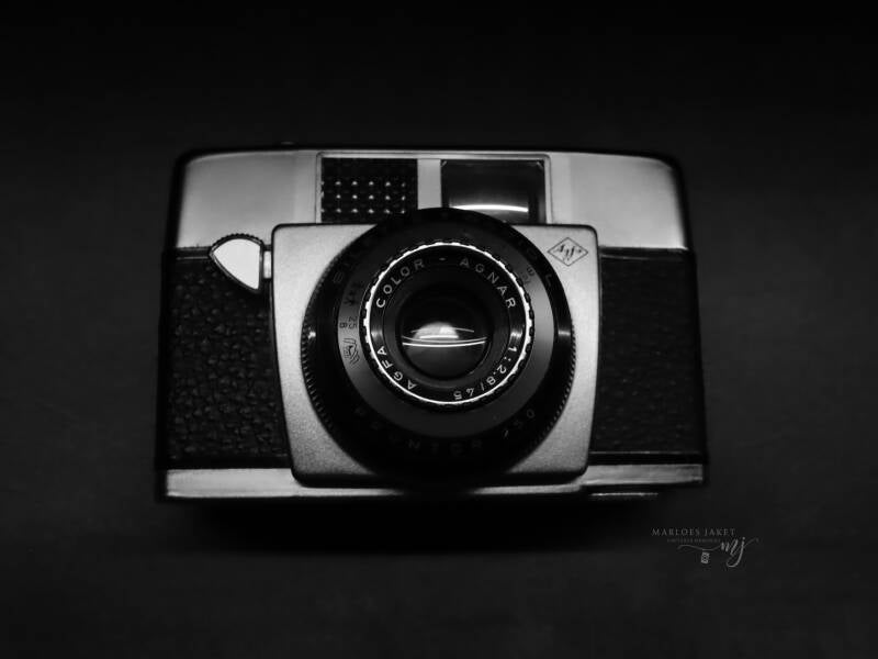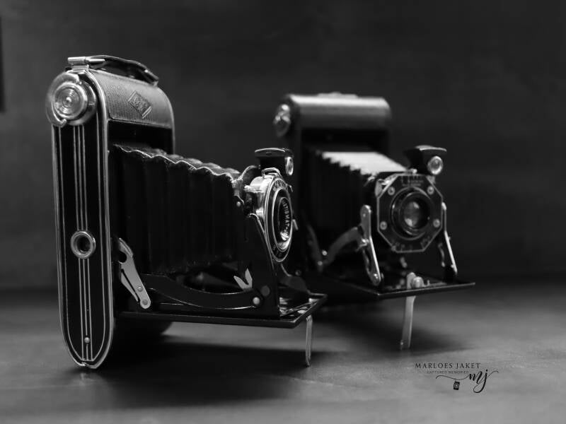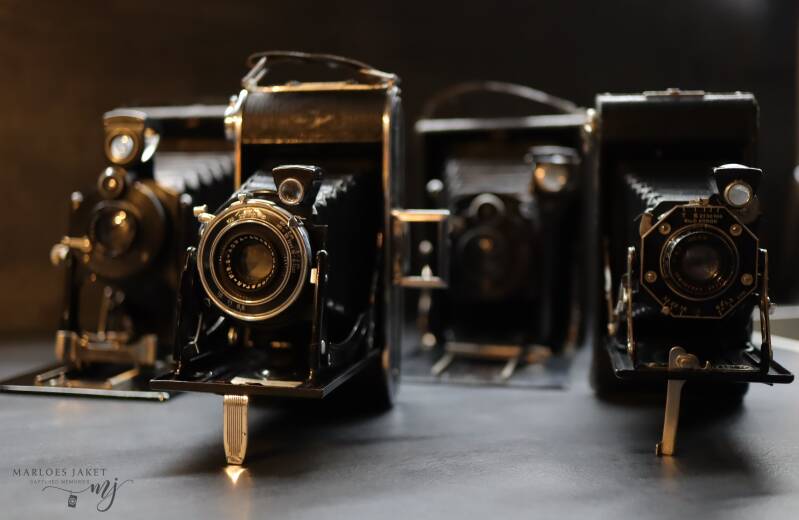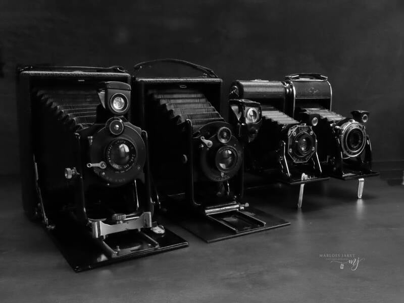 Een verzameling oude fotocamera's. Niet bewerkt.