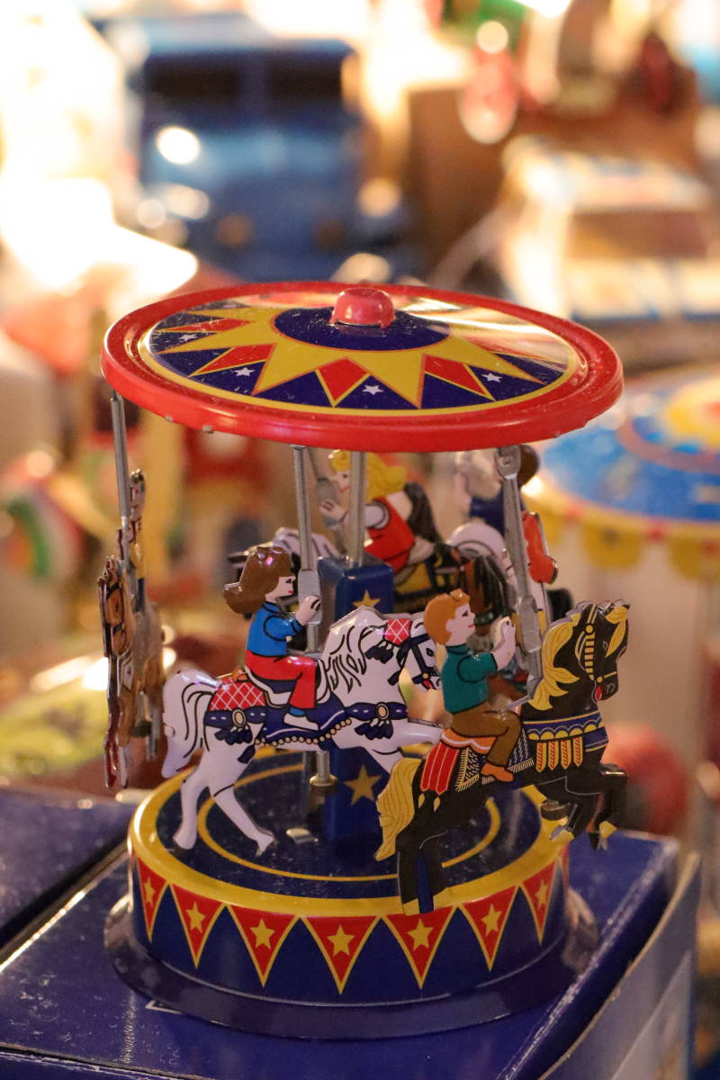 Er was veel van een heleboel! Kauwgomballen automaten, blikken speelgoed, kleding, pick-ups, radio's enz. enz.