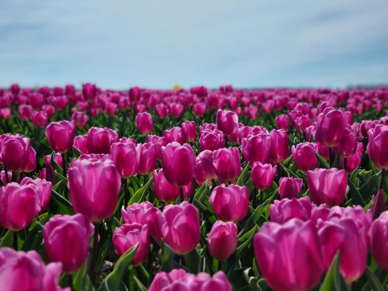 7/ Roze tulpen (en 1 gele); Plexiglas