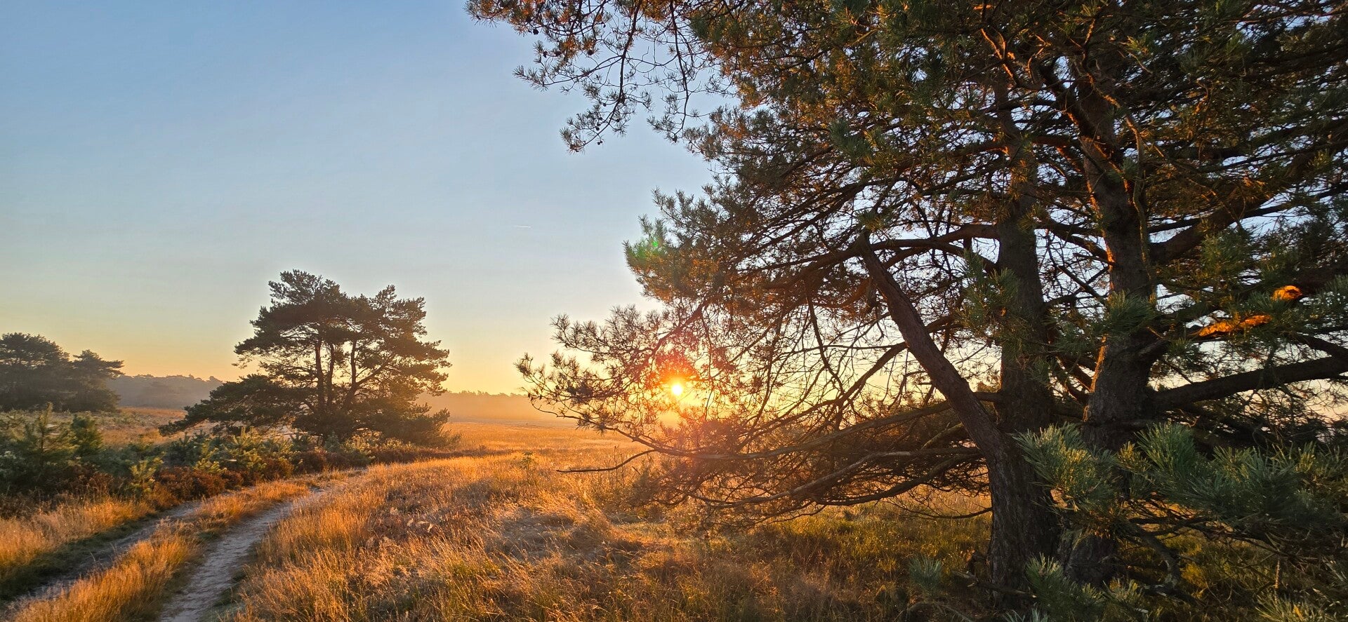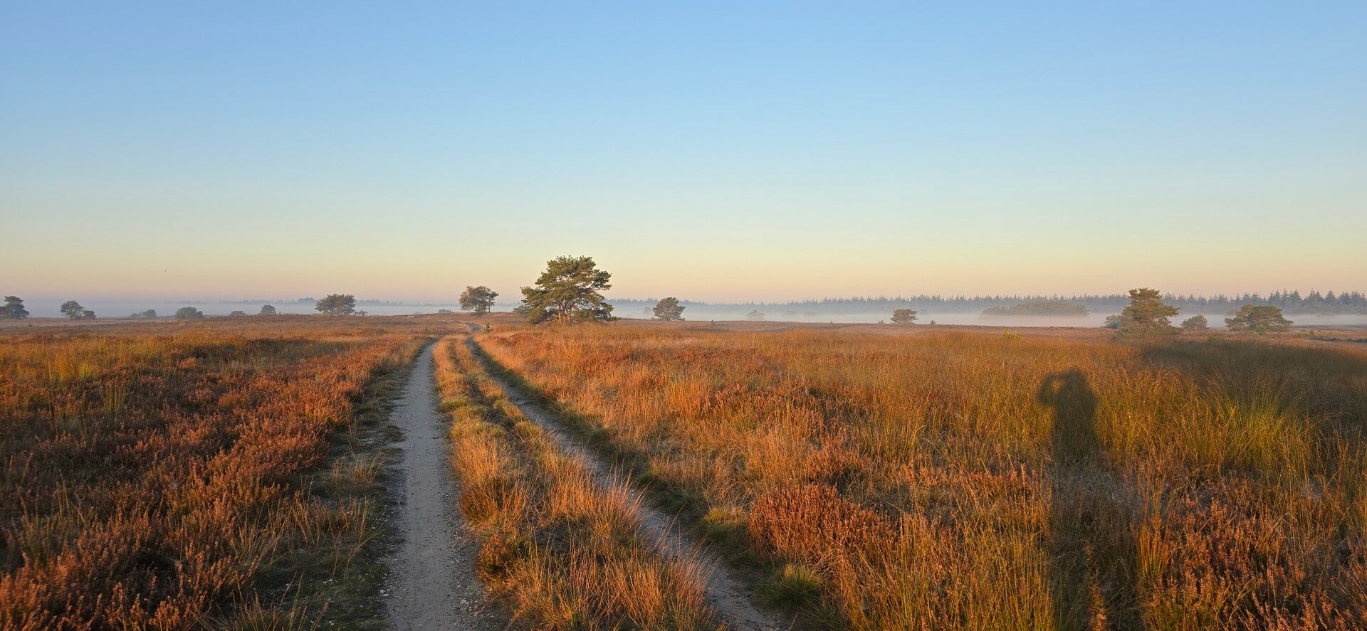 Een mooie zonsopgang op de Veluwe (okt 2024) De kleur van de lucht verschilt per minuut maar is ook afhankelijk of je richting zonsopkomst kijkt of dat je er met je rug naar toe staat.